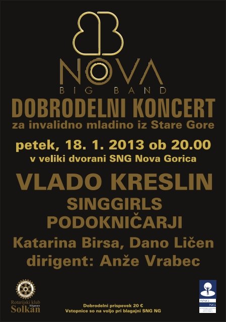 Klub je priredil dobrodelni koncert v sodelovanju s SNG Nova Gorica in Big Bandom Nova. Koncert se je začel ob 20.uri v veliki dvorani SNG Nova Gorica.