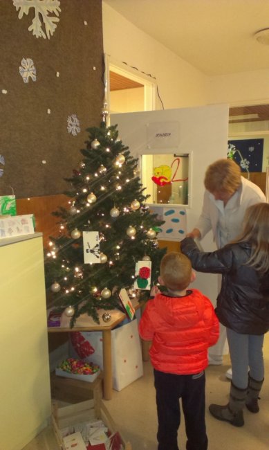 Okrasili smo paviljone na Oddelku za invalidno mladino v Stari Gori. Vse voščilnice, ki so nastale na Bevkovem trgu so našle svoje mesto na oddelkih, ogledali smo si tudi nekaj novosti za invalidne otroke in se poveselili z osebjem.